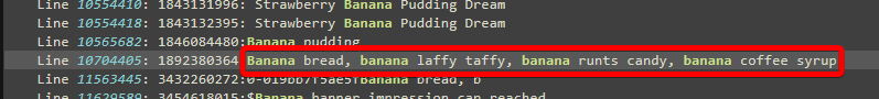 But the question asks specifically for what was deleted from here. If we look for “Banana ” (with the space), we can find references to both this Banana pudding and a list of other goods that aren’t found in the FFS image. Without context of what data belongs to what app, this can be pretty tricky.