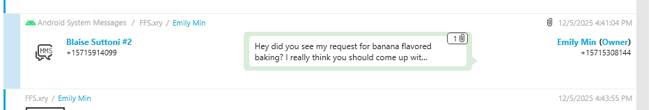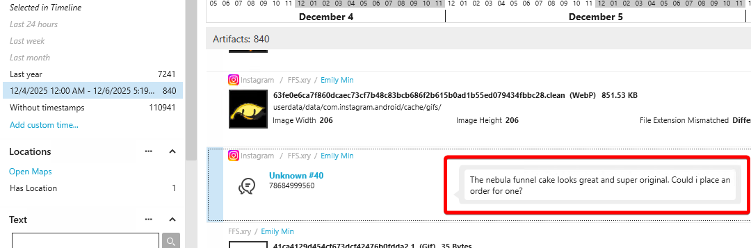 It’s useful to get a timeline of events here. Emily sends a message from her easy_e_money account to galactic.gateaux talking about a Nebula Funnel cake and how it looks “great” and “super original”.