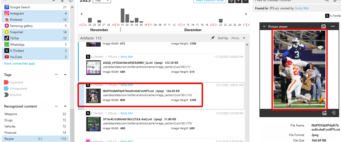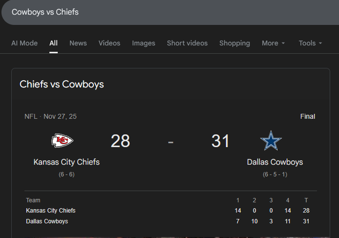Eventually, you can find a cached picture of a football player jumping. You can reverse image search to find who this is (George Pickens), confirm his position (wide receiver), and find the date of the game (Cowboys vs Chiefs, Thanksgiving Day).