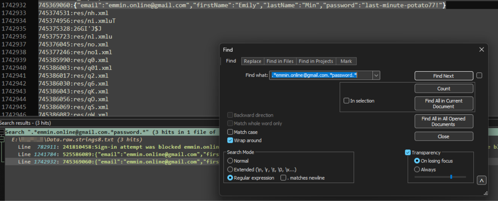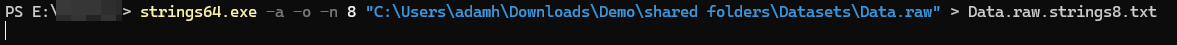 From here, I would recommend making a strings file, I used the strings64 utility from Sysinternals: