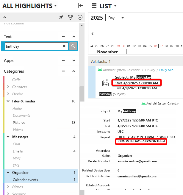 We have the default user’s (0) pin as ‘111111’ and user 150 (which is the secure folder) as ‘471996’. This looks like a date, and we get a pretty good hint that this is the user’s birthday if you search the calendar for “birthday”.