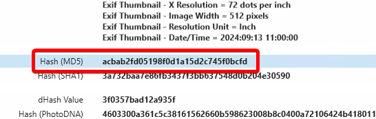 Scroll down a little further and you will find that XAMN has already stored the hashes for this image.