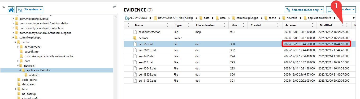 Navigate to the Nike app’s folder, and locate a subfolder called applicationExitInfo:
