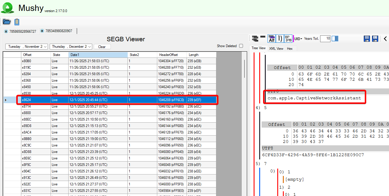 We can see events on the first of December here, but to confirm that this is an actual connection event, we can put it in context with the AppInFocus Biome, located at: